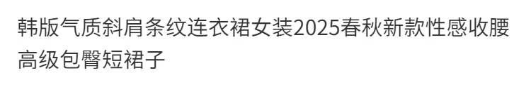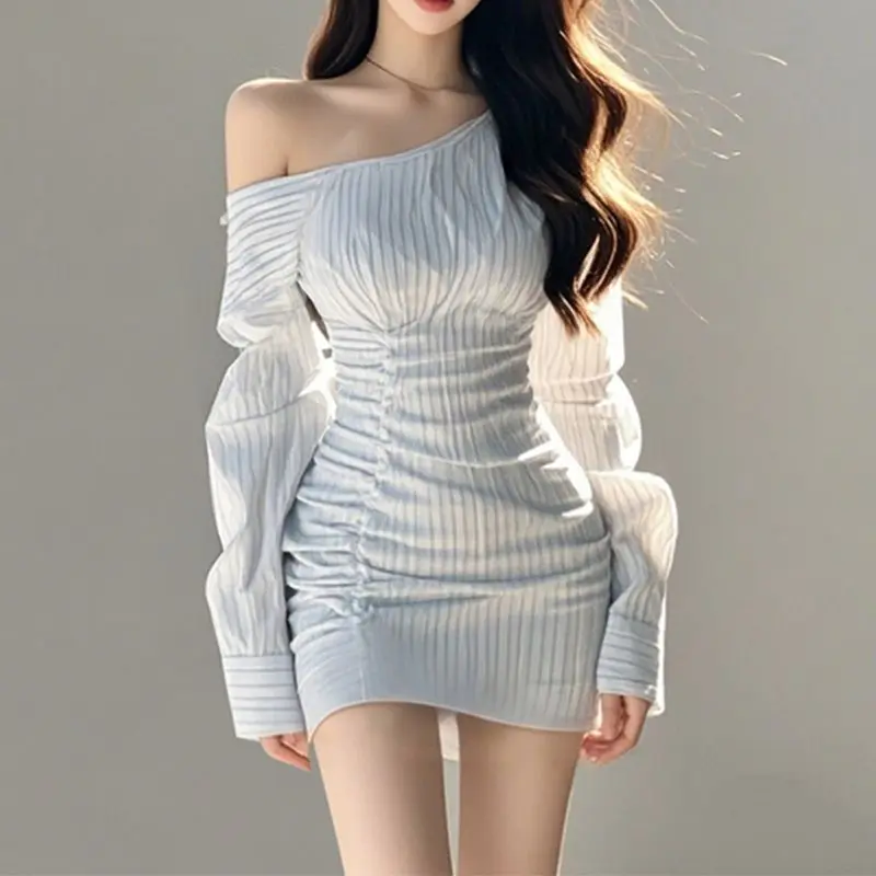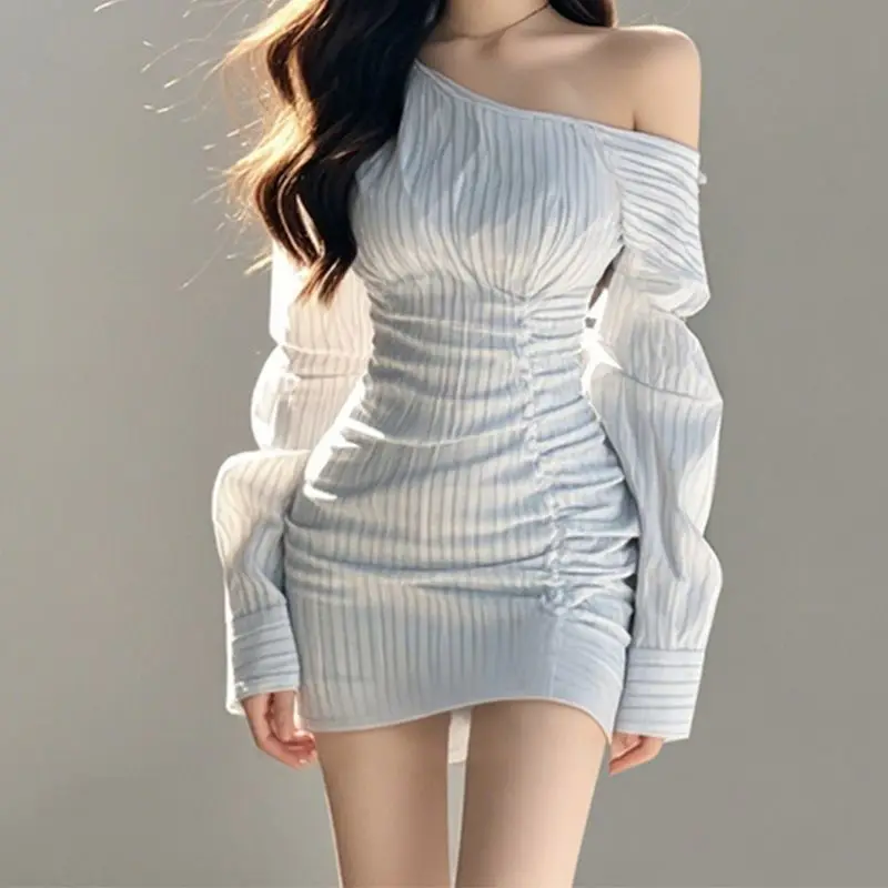Women's Clothing 2025 Spring and Autumn New Sexy Waist-Close-Up High-Ray Hip-Pack Temperature Striped Striped Dress