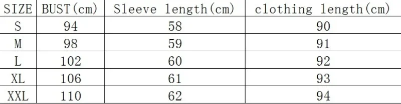 size_info: {"sizeInfoList":[{"length":{"cm":"94","inch":"37.01"},"size":"S","vid":-1},{"length":{"cm":"98","inch":"38.58"},"size":"M","vid":-2},{"length":{"cm":"102","inch":"40.16"},"size":"L","vid":-3},{"length":{"cm":"106","inch":"41.73"},"size":"XL","vid":-4},{"length":{"cm":"110","inch":"43.31"},"size":"XXL","vid":-5}]}