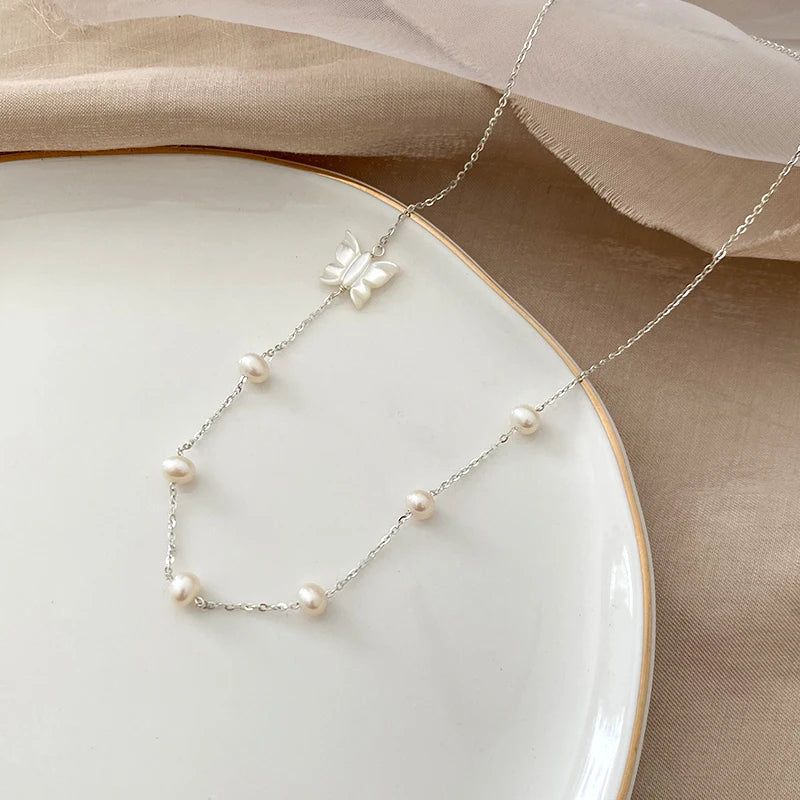 ASHIQI Natural Freshwater Pearl 925 Sterling Silver Necklace Fine Jewelry for women
