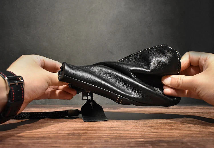 ROOG Men's Genuine Leather Clutch High Quality Long Wallet Women's Luxury Mobile Phone Bag Credit Card Holder Purse Wrist Bags