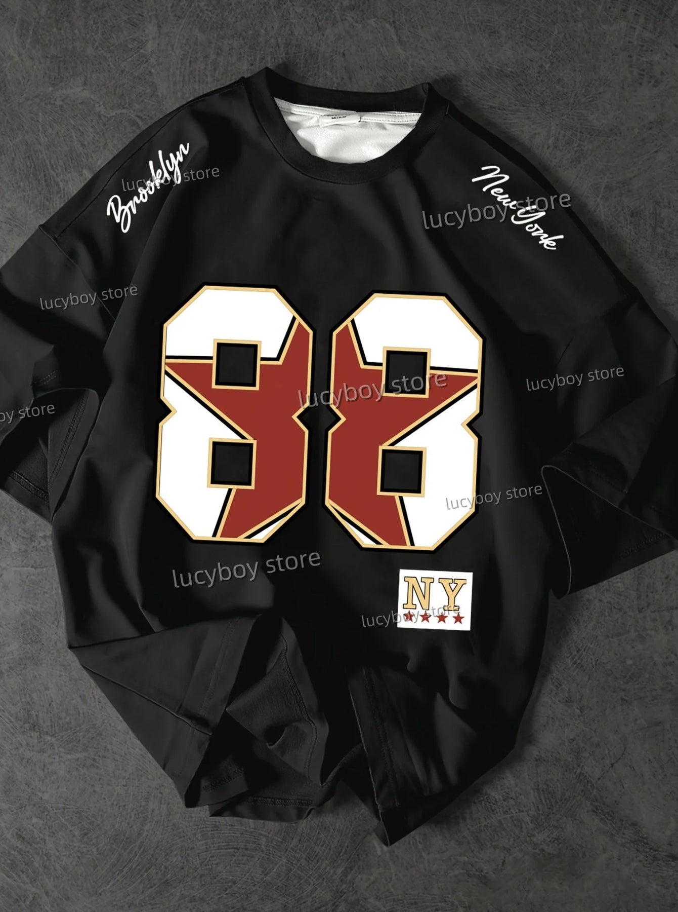 Sportwear Jersey TEE Men NO.88 Printed Short Sleeve T Shirt Man O Neck Racing Football Tee Vintage Casual Tops Men Clothes