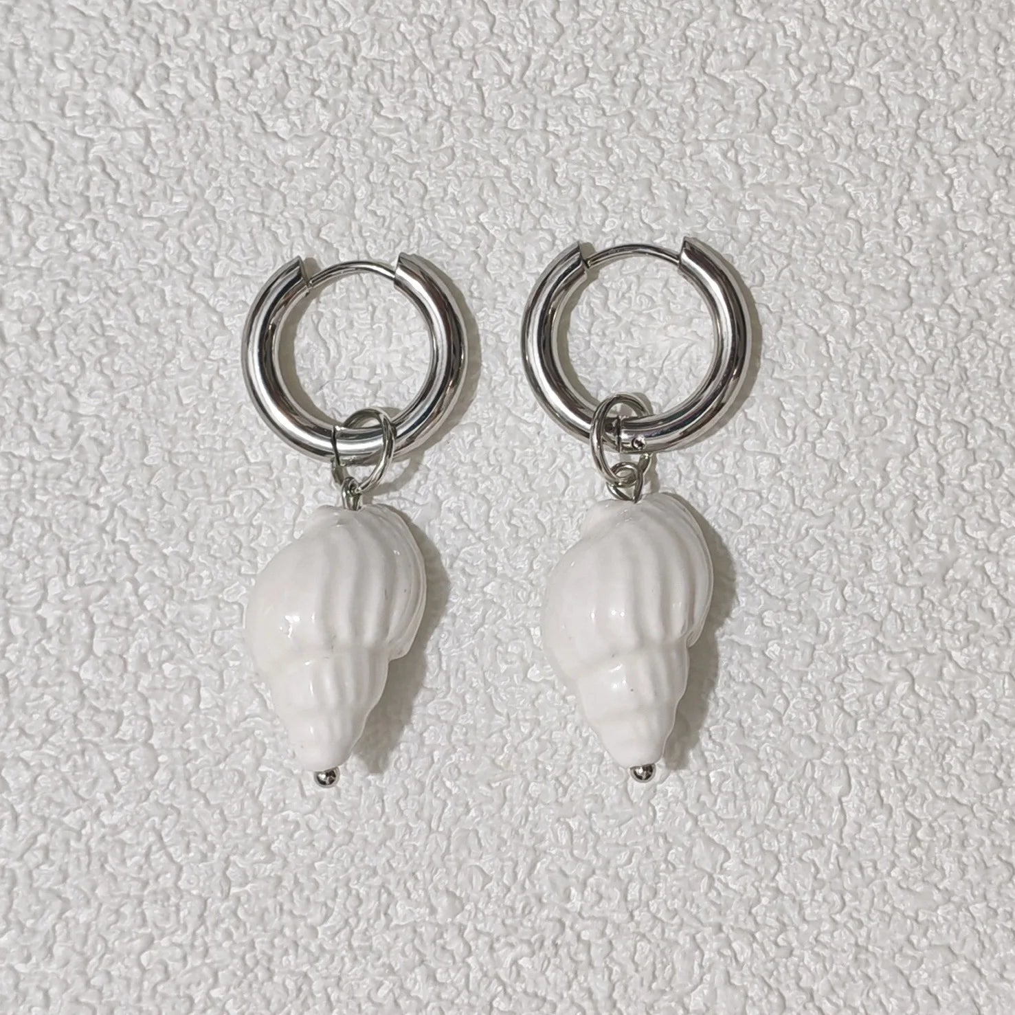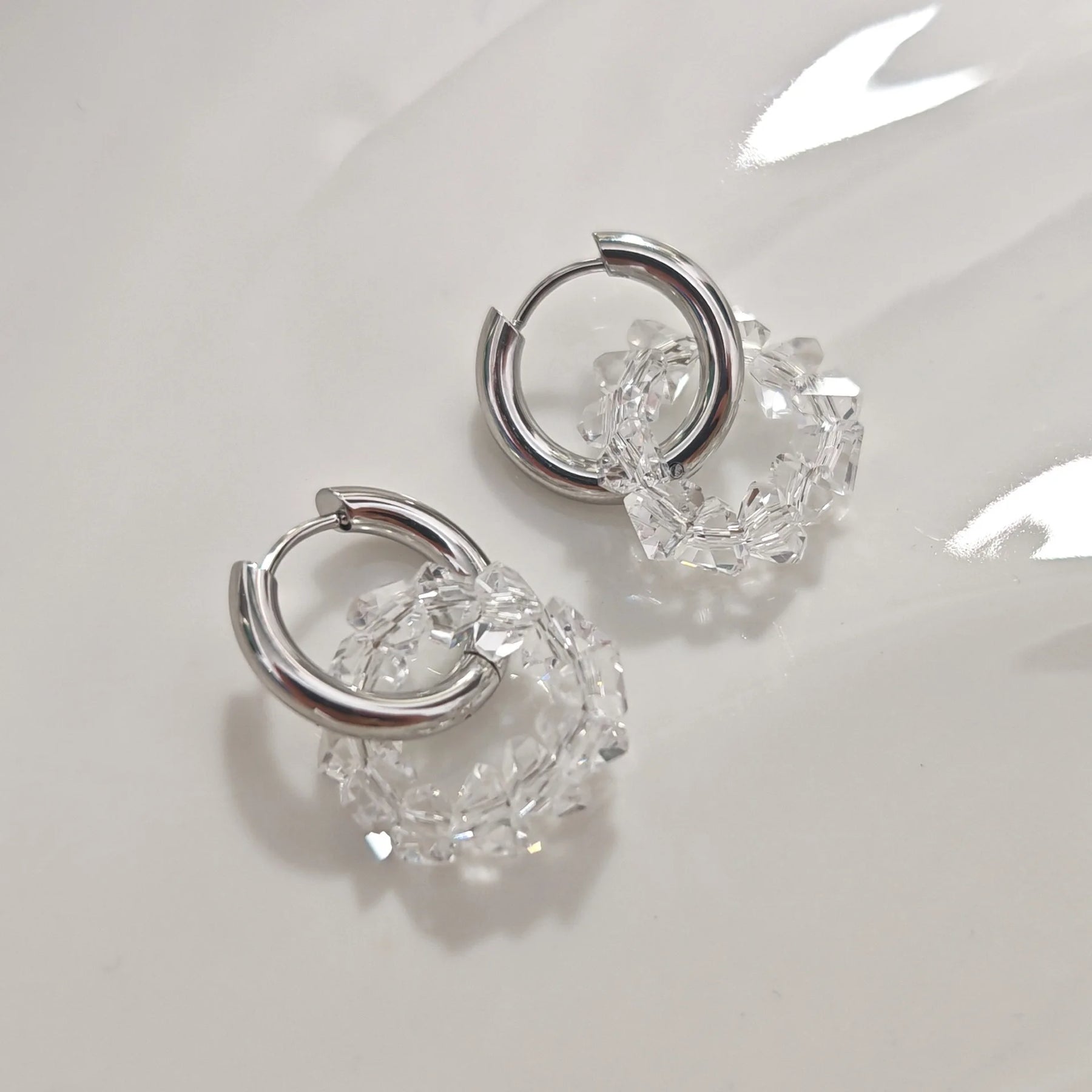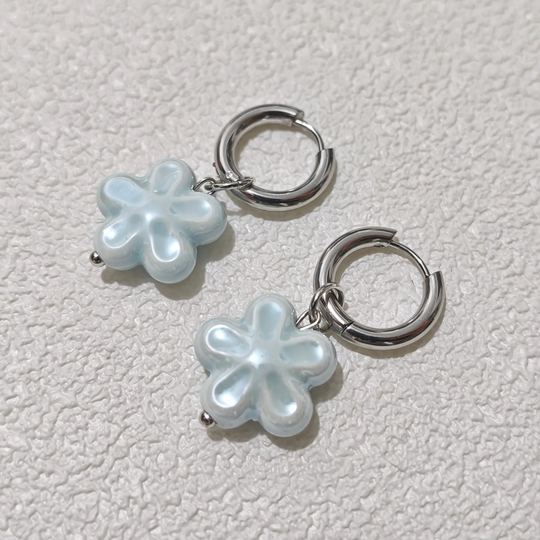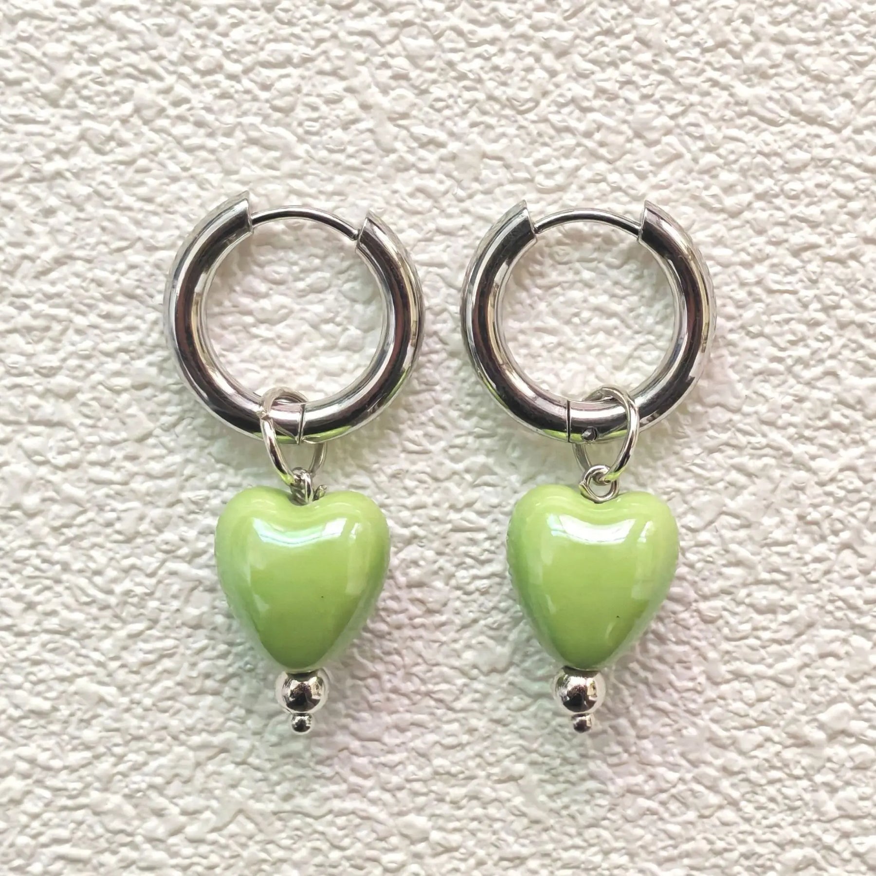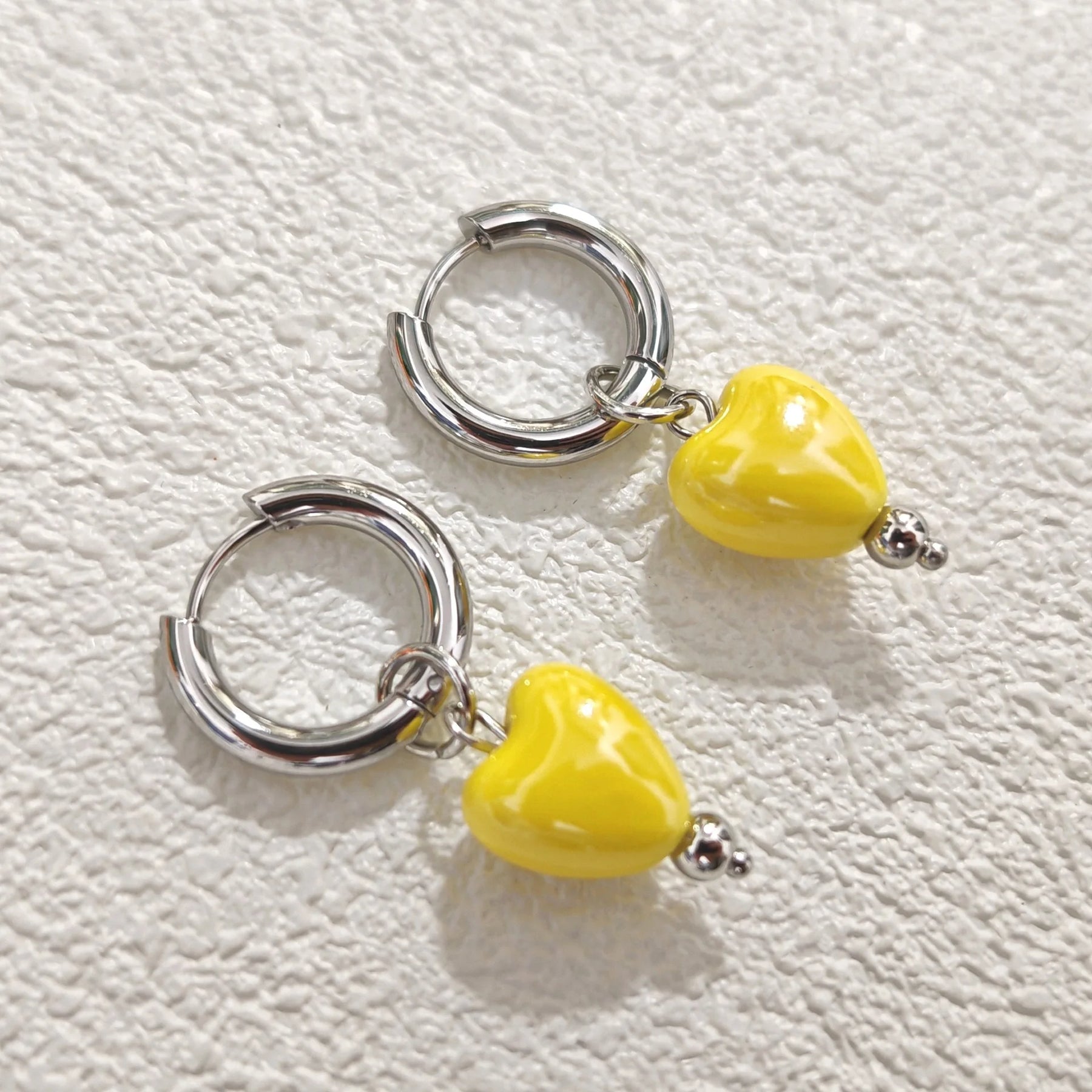 Stylish Elegant Sweet Biue Ceramic Heart Shape Pendant Earrings for Women Stainless Steel Double Ring Ear Cuffs Charm Jewelry