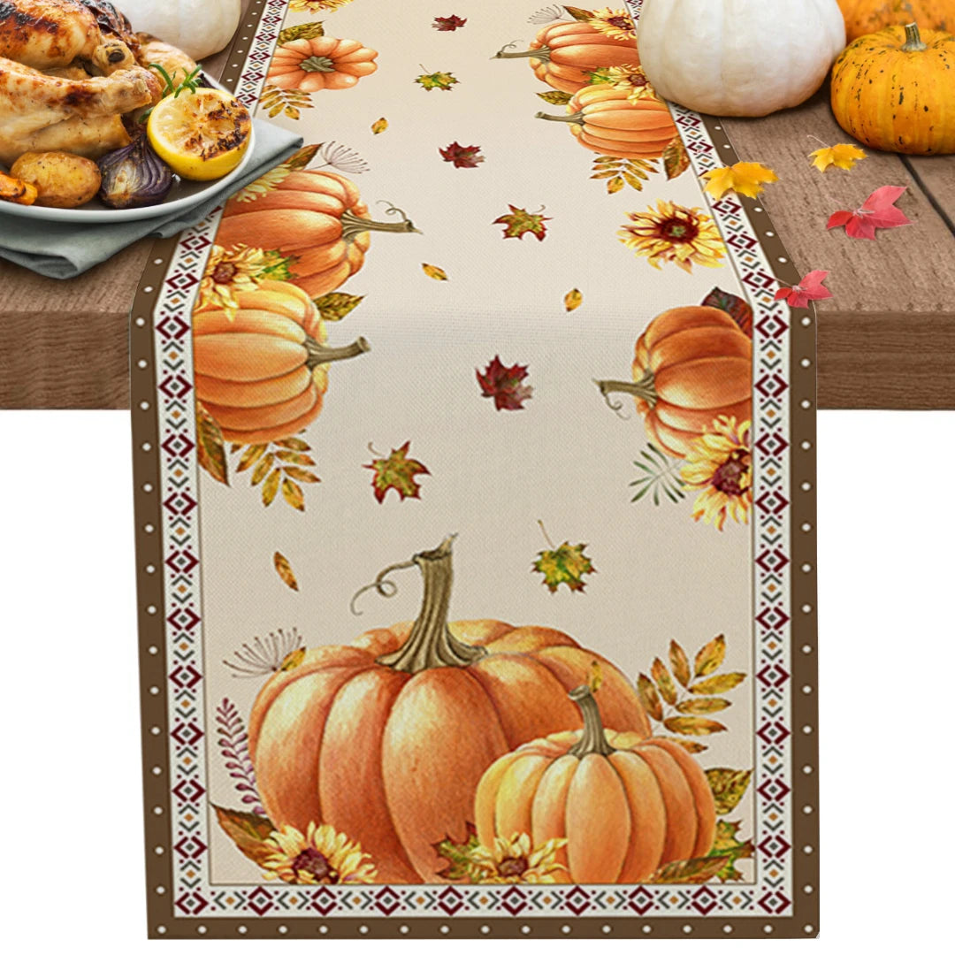 Thanksgiving Autumn Pumpkin Maple Leaf Dining Table Runner Wedding Decor Linen Table Runner Dining Table Christmas Decoration